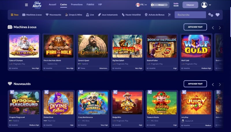 Shiny Wilds se distingue avant tout par sa vaste sélection de jeux de casino en ligne. En effet, le site propose plus de 4 000 titres différents provenant des meilleurs éditeurs du marché tels que Microgaming, NetEnt, Playtech ou encore Betsoft. Cette variété permet aux joueurs de découvrir une multitude d’univers et de thématiques allant des machines à sous classiques aux jeux de table en passant par les jeux avec croupiers en direct.