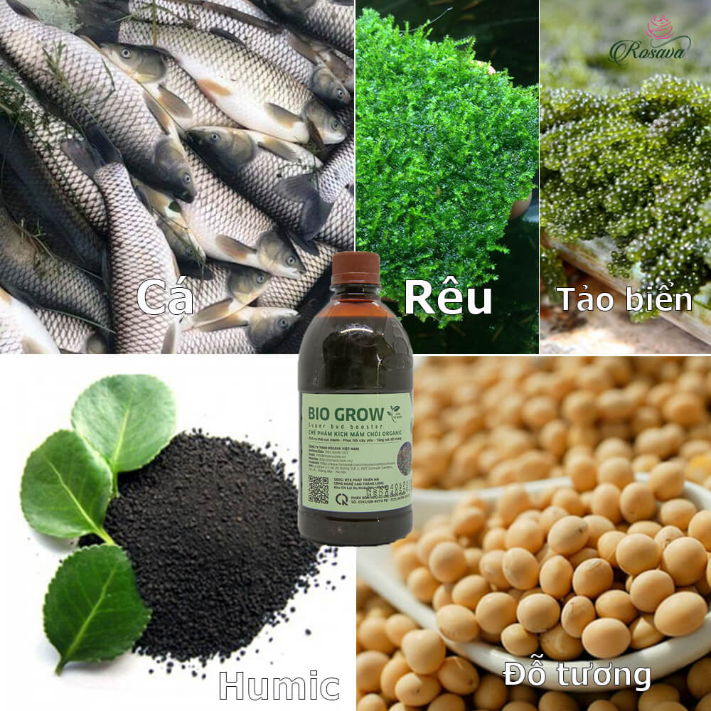 Phân bón sinh học kích mầm chồi cho hoa hồng Bio Grow là chế phẩm phân bón hữu cơ vi sinh được sản xuất từ các nguyên liệu tự nhiên như: rêu, tảo biển, cá, đỗ tương, humic,…theo phương pháp thuỷ phân lạnh nhờ các chủng vi sinh vật đặc biệt nên vẫn giữ nguyên được nguồn dinh dưỡng
