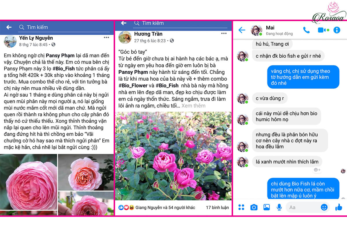 Khách hàng trả feedback về phân bón sinh học nuôi chồi bón lá cho hoa hồng Bio Fish