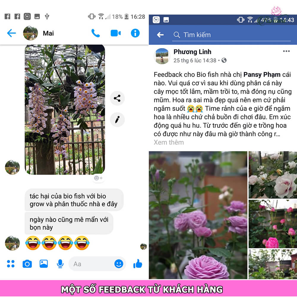 Khách hàng trả feedback về phân bón sinh học nuôi chồi bón lá cho hoa hồng Bio Fish