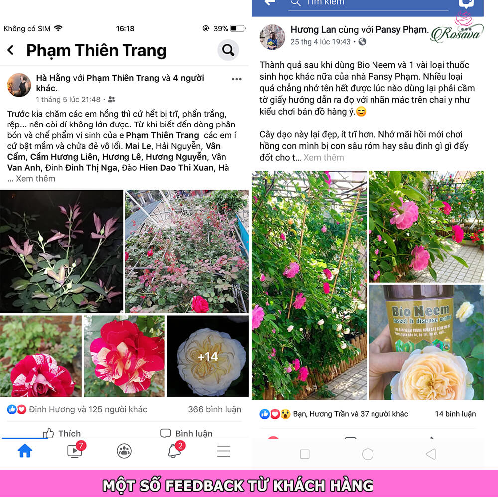 Khách hàng trả feedback về thuốc trừ sâu sinh học cho hoa hồng Bio Neem